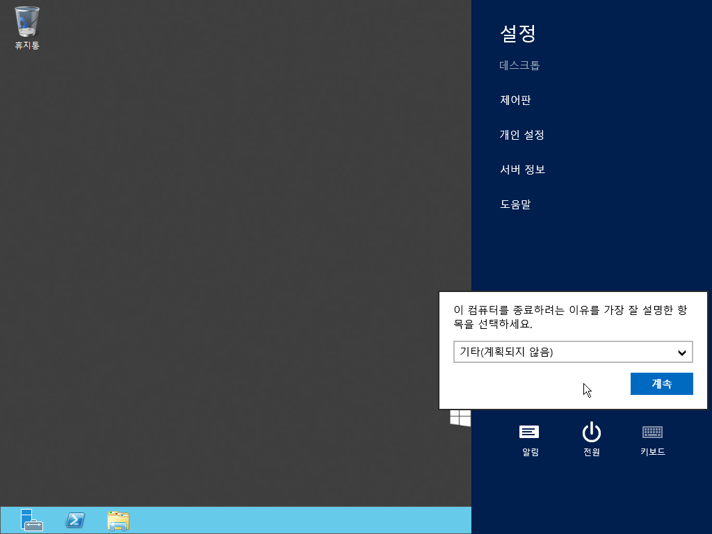 서버 계열은 역시 시스템을 종료할 때 이벤트를 선택해줘야 합니다.