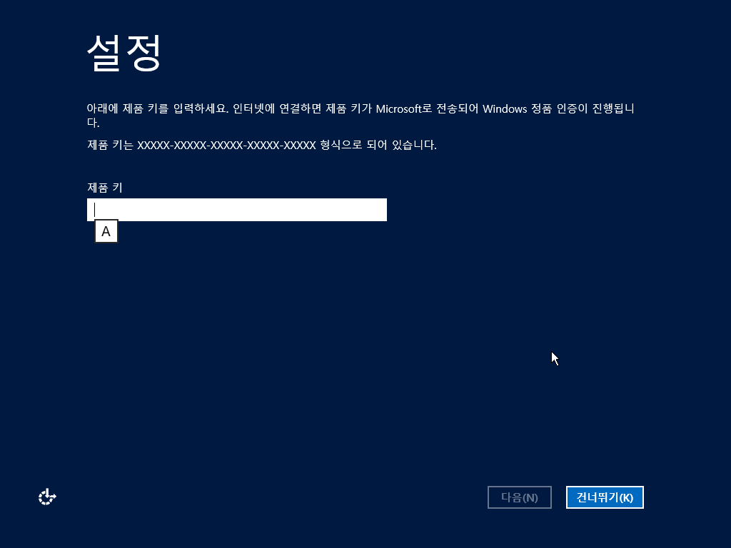제품 키를 입력합니다. 건너뛸 수 있습니다.