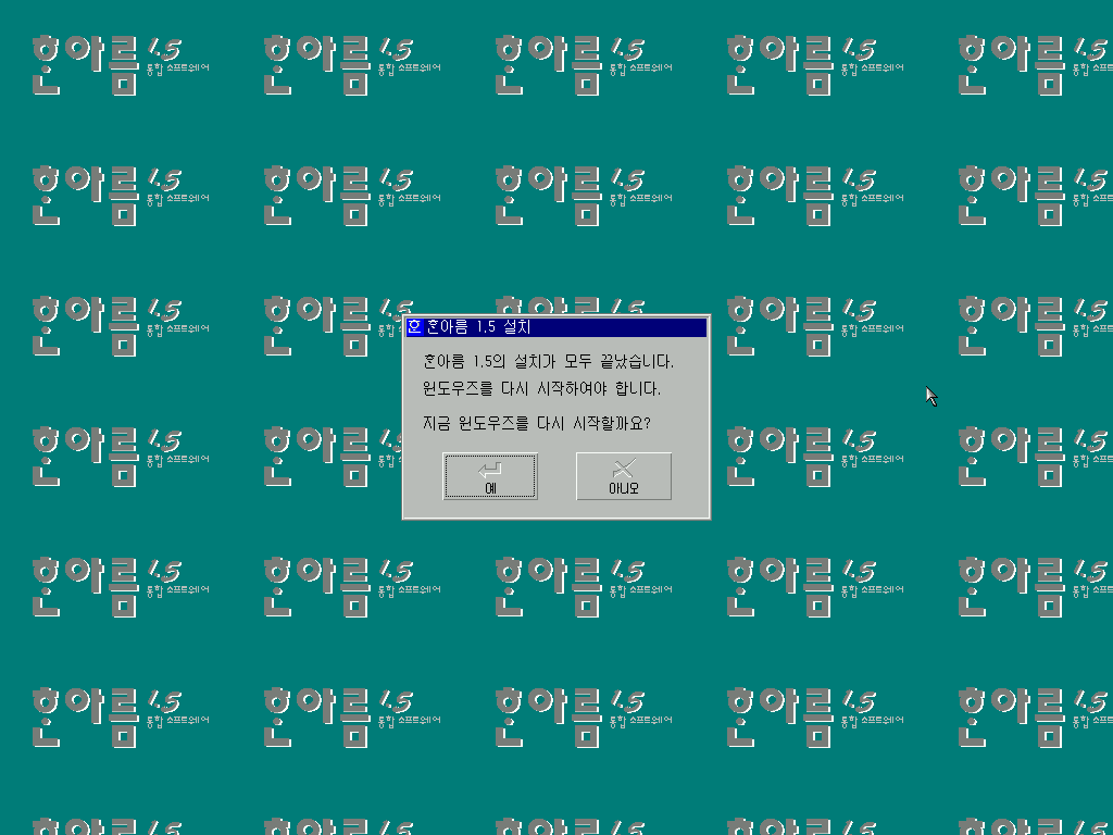 한아름 1.5 설치가 끝났습니다. 일단 설치할 게 남았으니 아니오를 누릅니다.