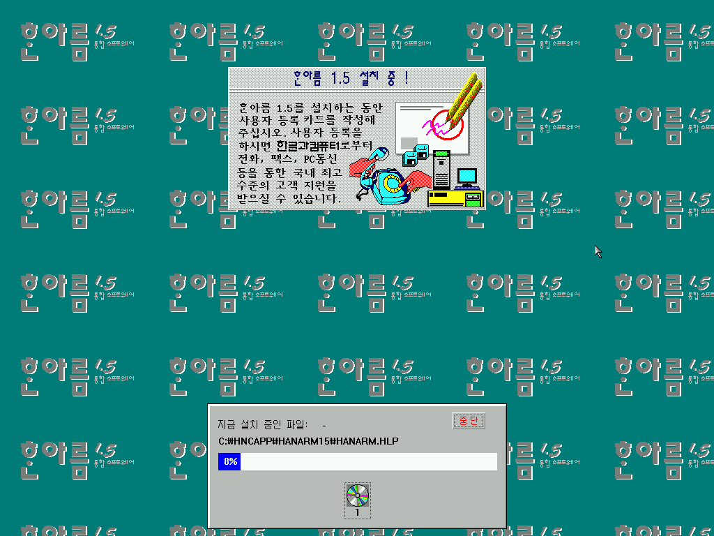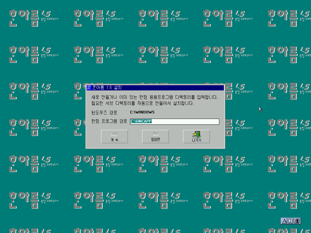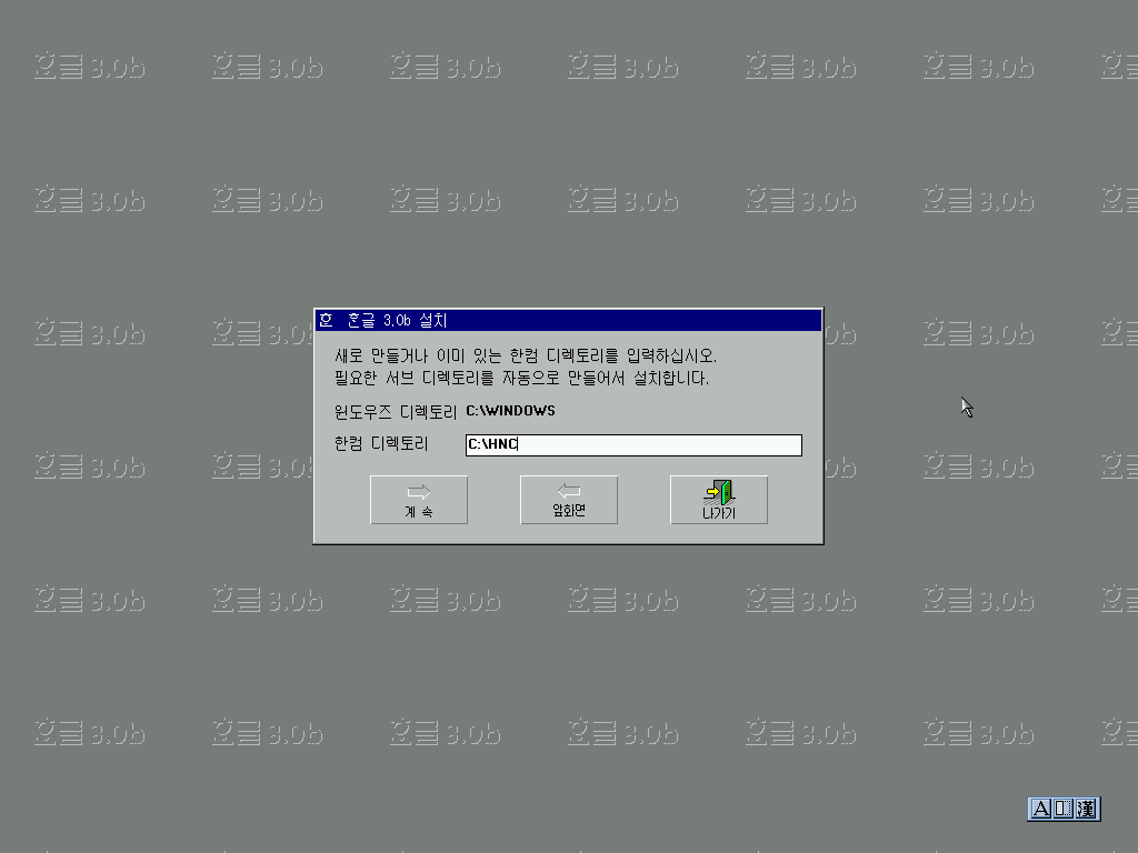 한글 3.0b의 설치가 모두 끝났습니다.