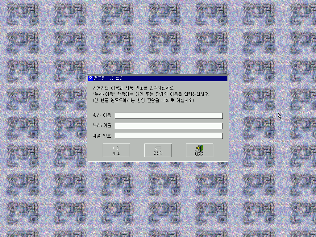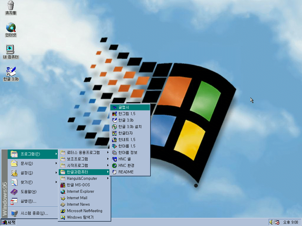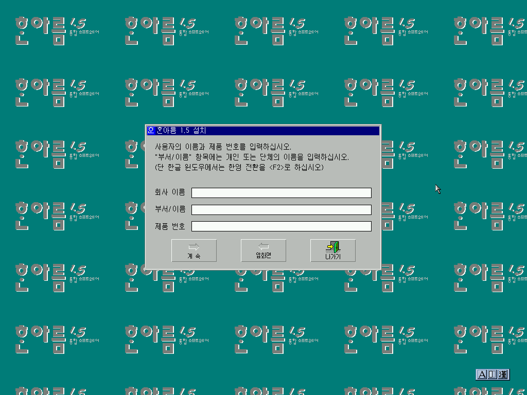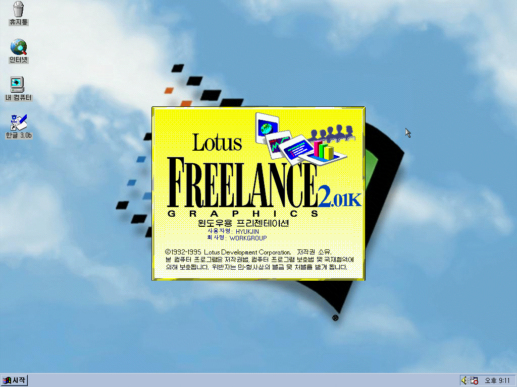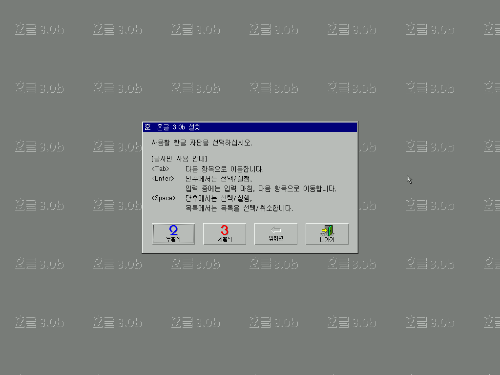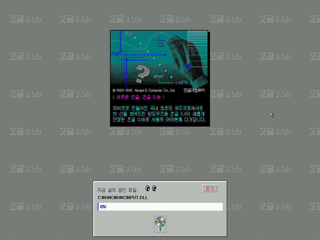 한글 3.0b를 실행해줍니다. 역시 저 금색 글씨 로고는 멋있습니다.