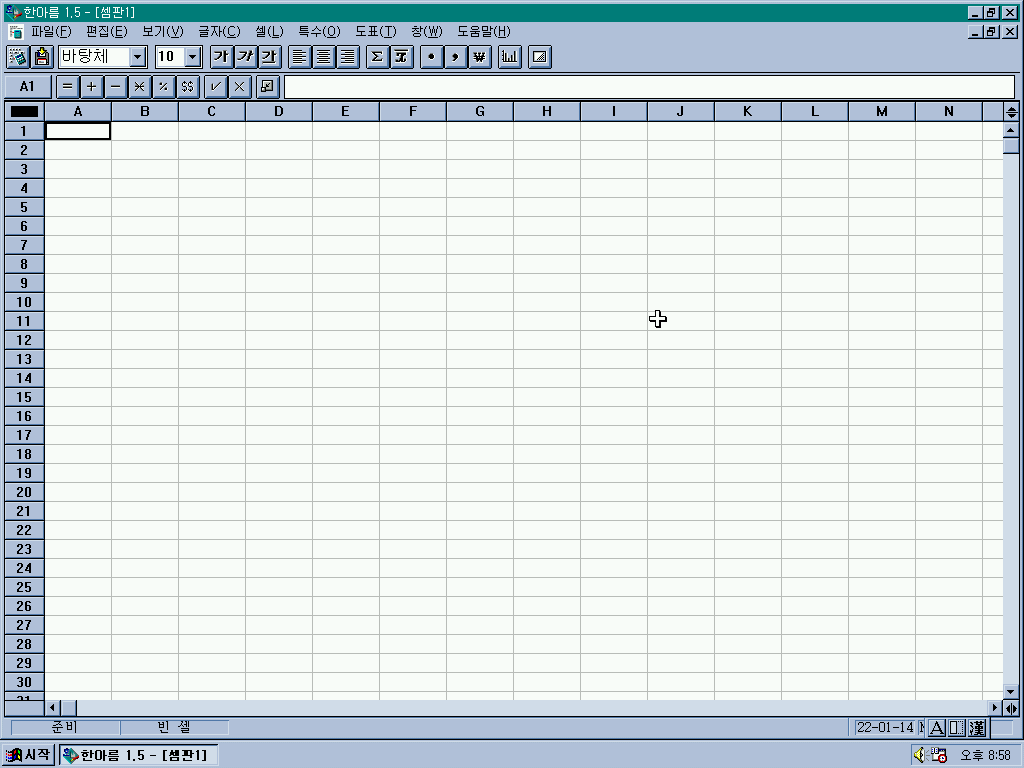 셈판 작성기를 실행한 모습입니다. 엑셀과 같은 스프레드시트 프로그램입니다. 근데 같은 스프레드시트 프로그램인 로터스도 껴주고, 이것도 껴주네요 ㅋㅋㅋ