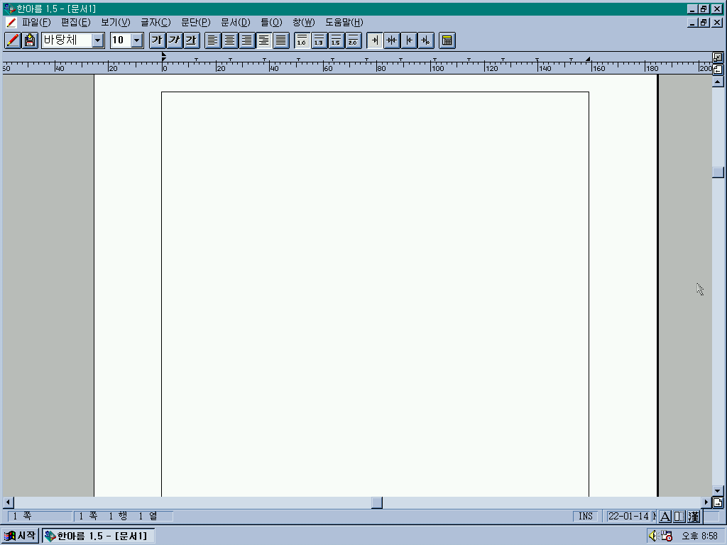 문서 작성기를 실행한 모습입니다. 워드 같은 모습입니다.