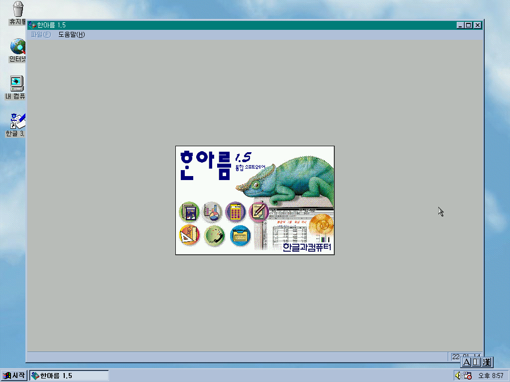 다음은 한아름 1.5를 실행해보았습니다. 로고의 카멜레온이 귀엽네요.