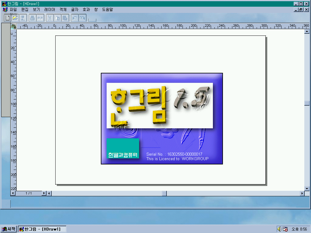 다음은 한그림 1.5를 실행해보았습니다. 로고에 3D 그래픽이 많이 사용되었습니다.