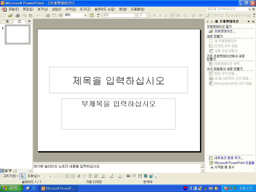 파워포인트의 모습입니다. 정식판과 동일합니다.