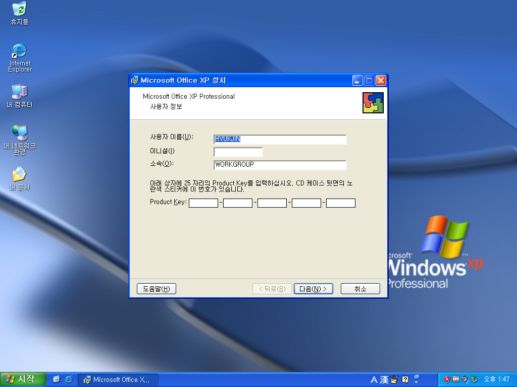 이상 Microsoft Office XP 평가판 설치기였습니다.