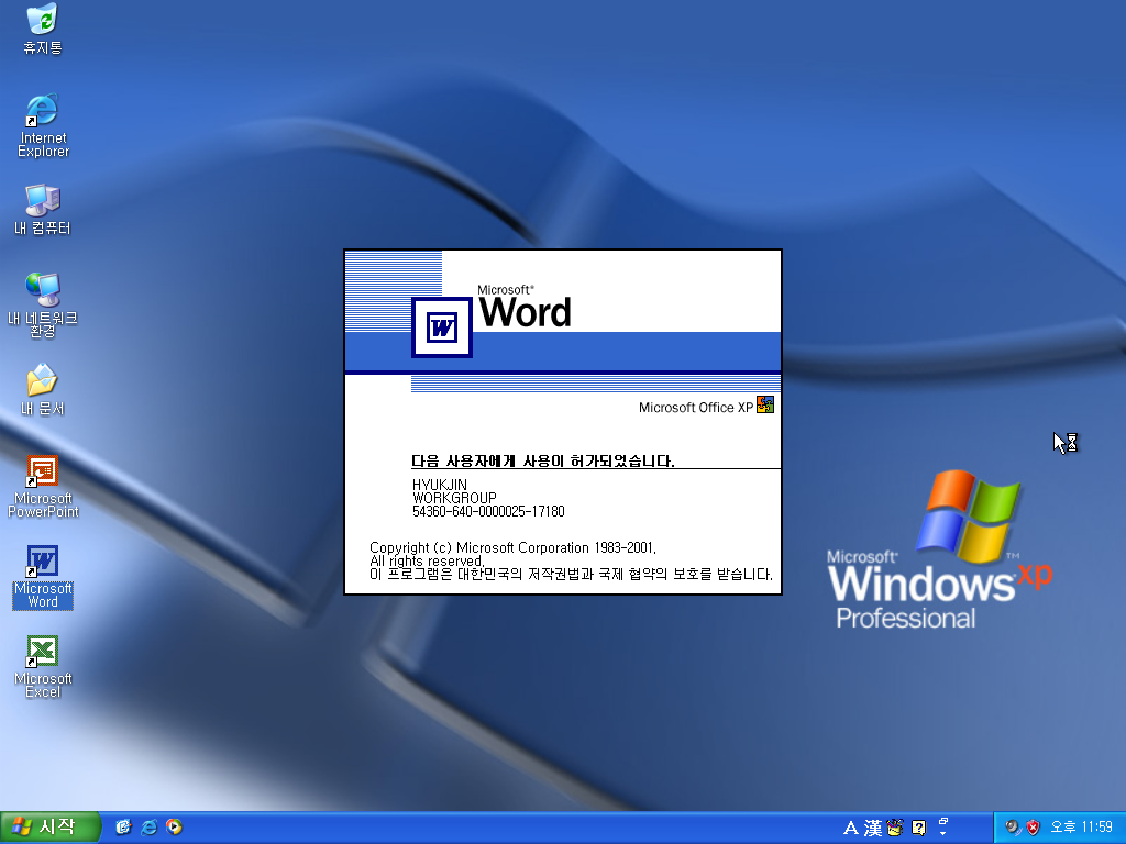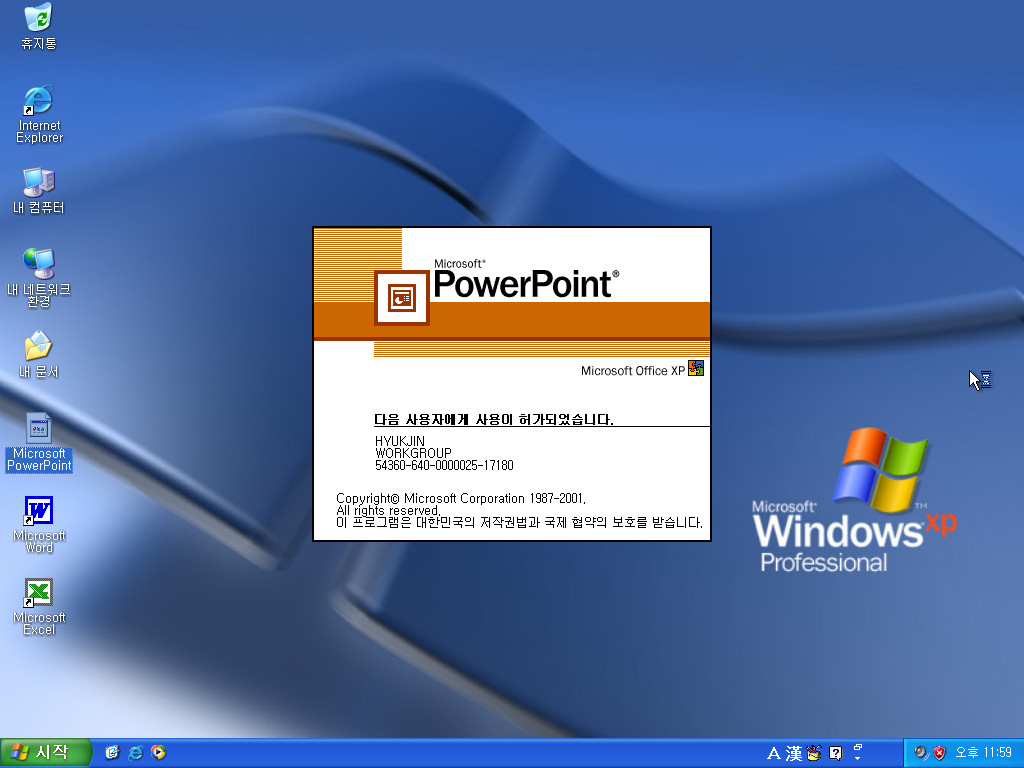 Microsoft Office XP 평가판을 설치해보았습니다. 30일 평가판입니다.