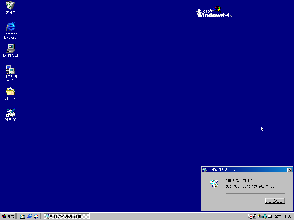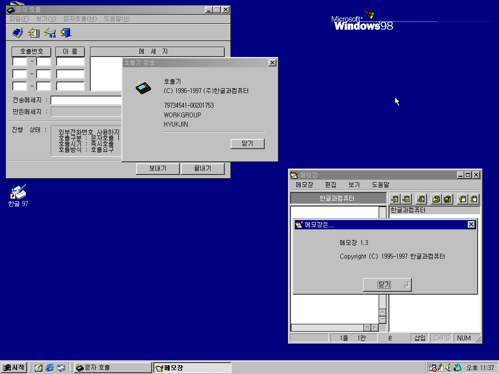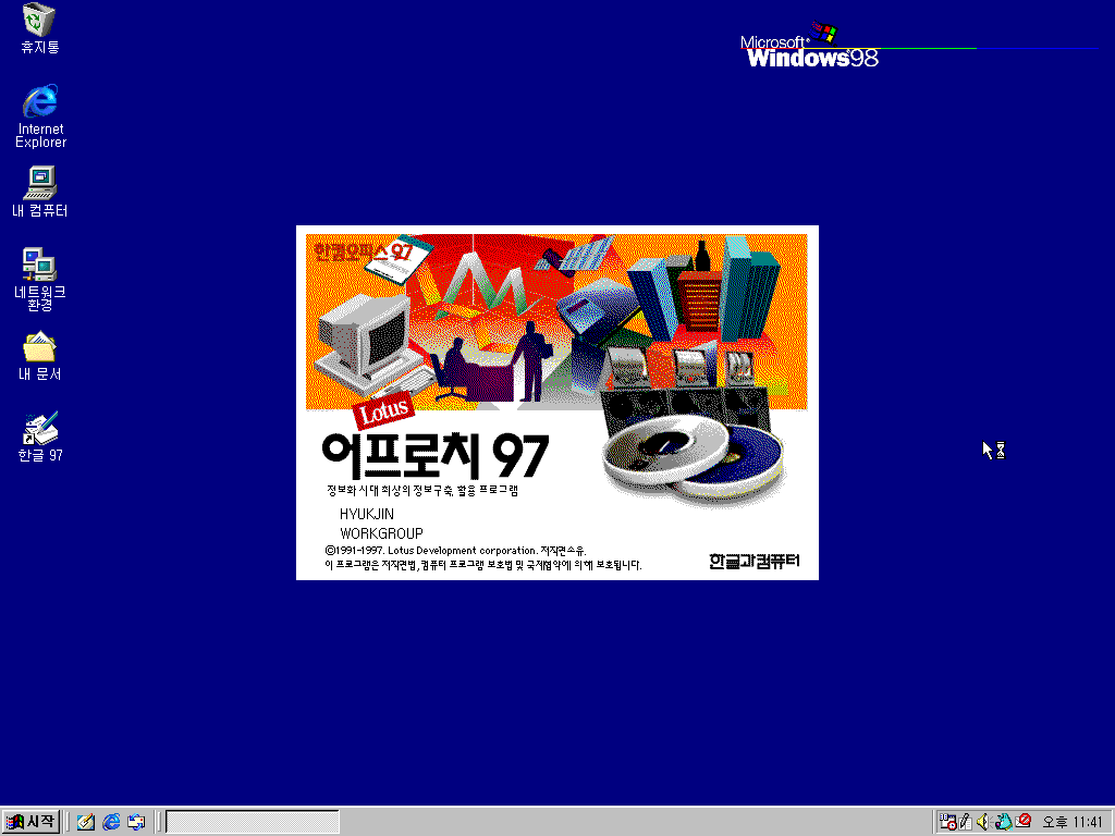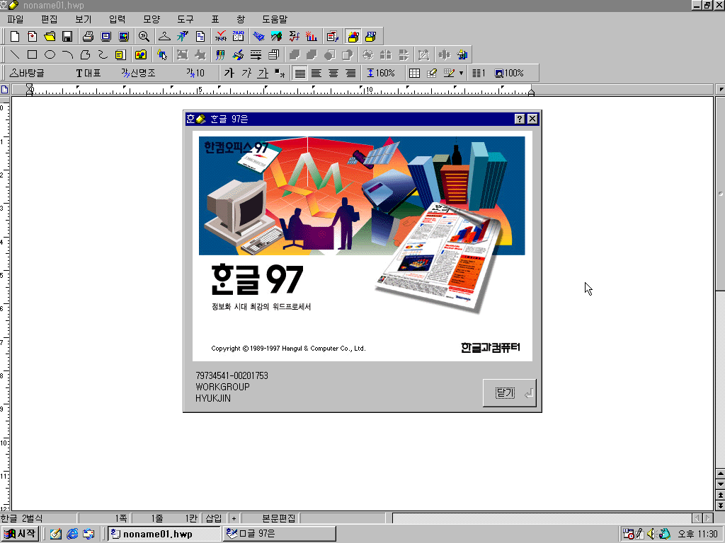 한글 97을 실행 중입니다. 로고가 일반 한글 97과 살짝 다릅니다.