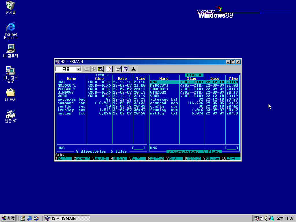 한컴쉘입니다. 파일 관리를 하는 것 같습니다.