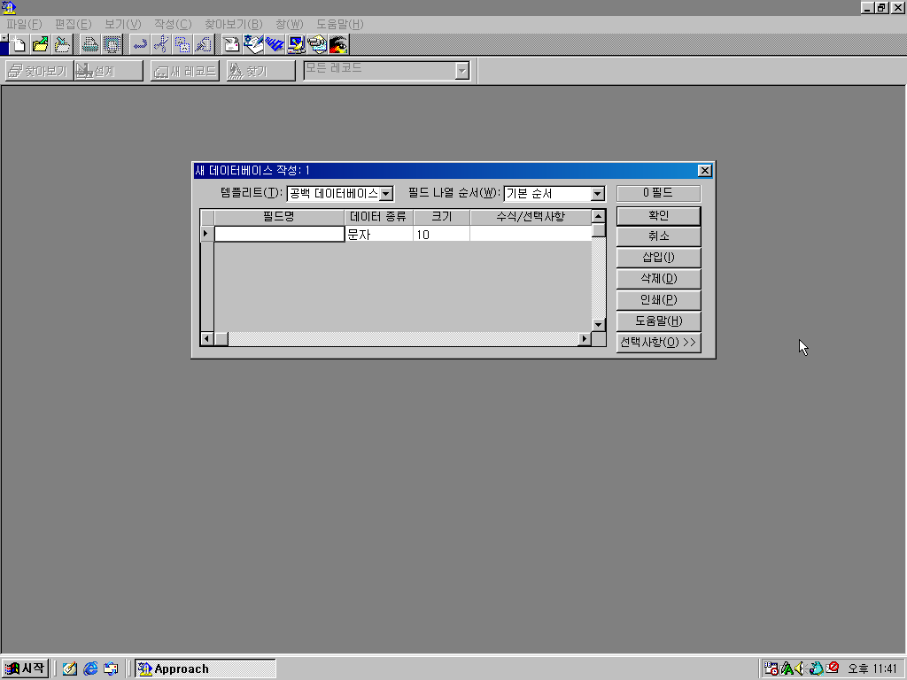 로터스 어프로치 97의 모습입니다. 데이터베이스를 작성할 수 있습니다.
