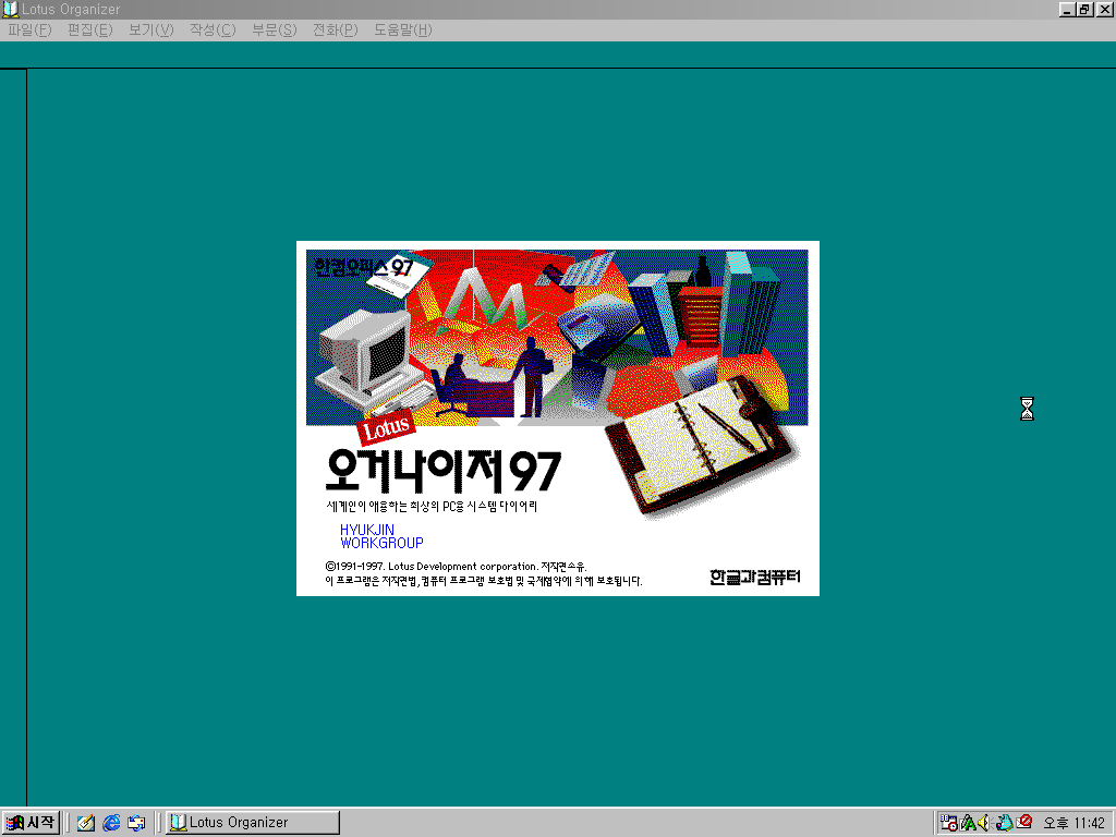 다음은 로터스 오나이저 97입니다. 이 역시 한컴 로고에 스케줄북이 들어간 그림입니다.