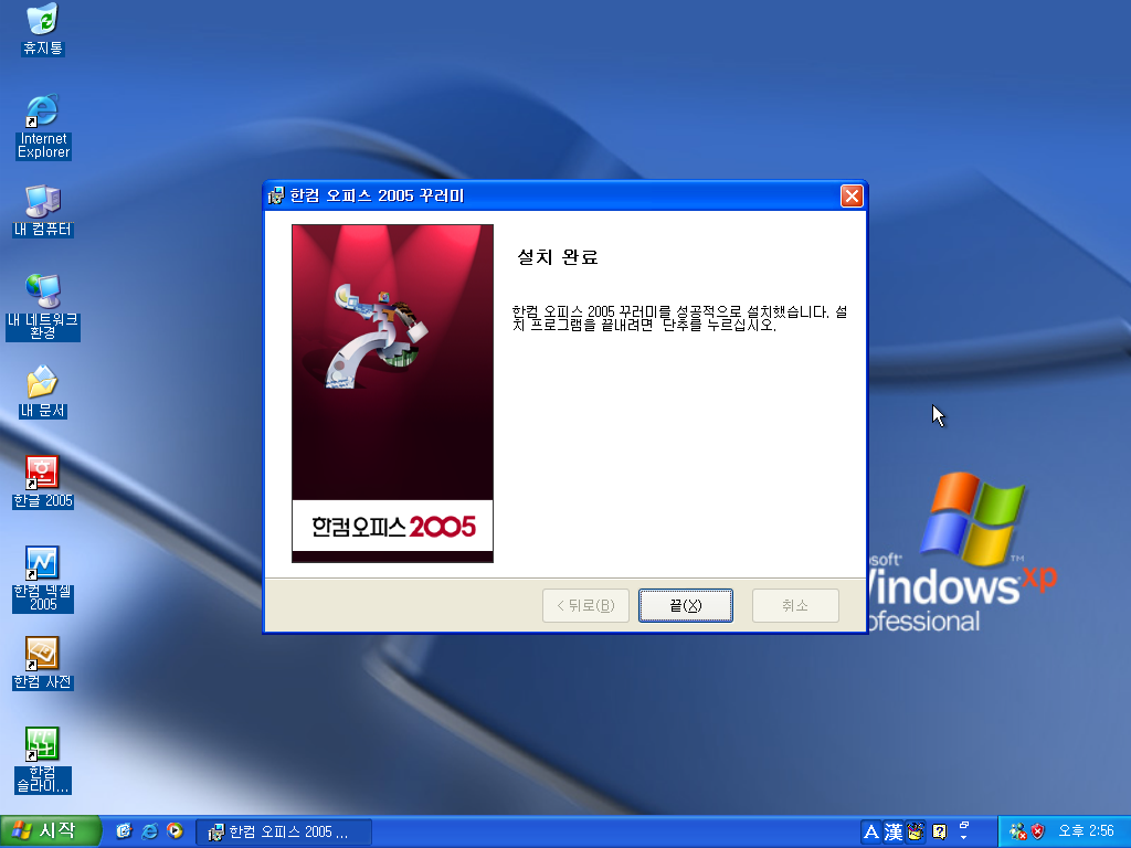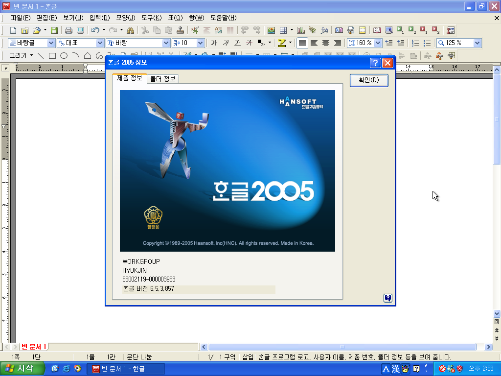 한글 2005입니다. 행망용 로고가 박혀있네요.