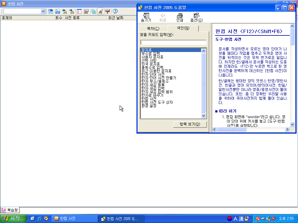 한글 2005의 모습입니다. 단품과 같은 모습입니다.