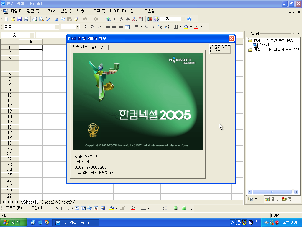 다음으로 한컴 넥셀 2005를 실행해보았습니다.