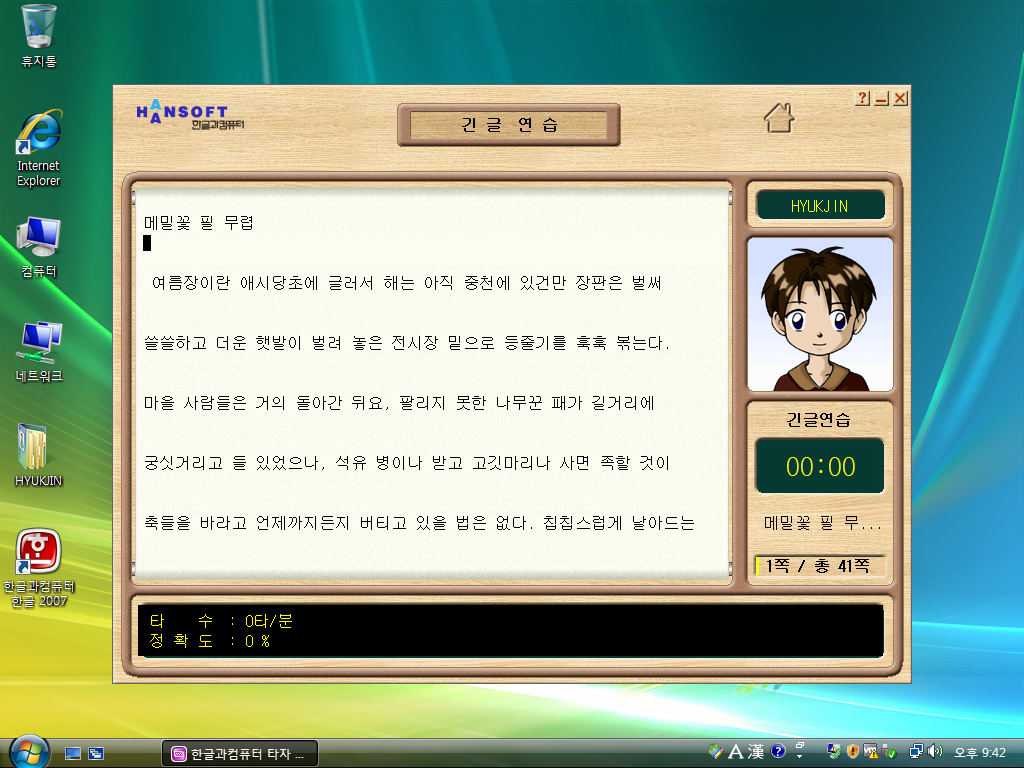 한컴 타자연습의 모습입니다. 2007까지 이 버전이 이어집니다.