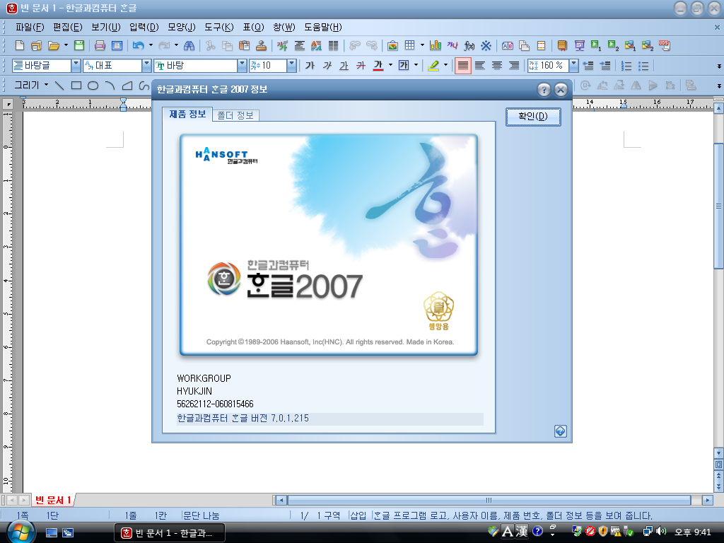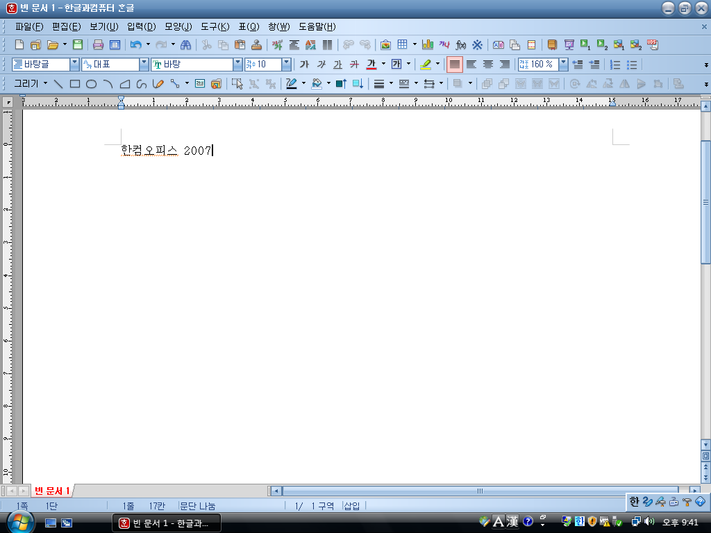 한글 2007의 모습입니다. 단품 버전과 똑같습니다.