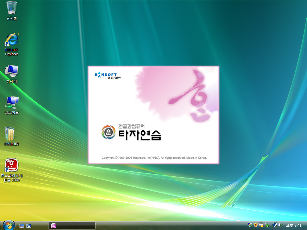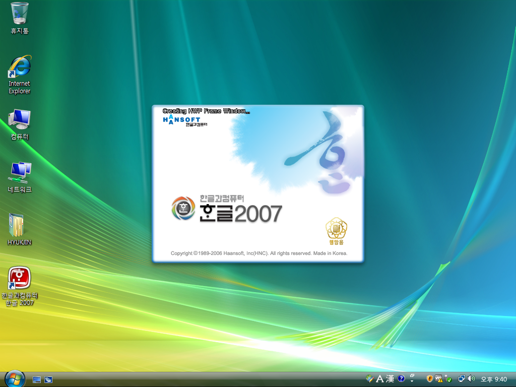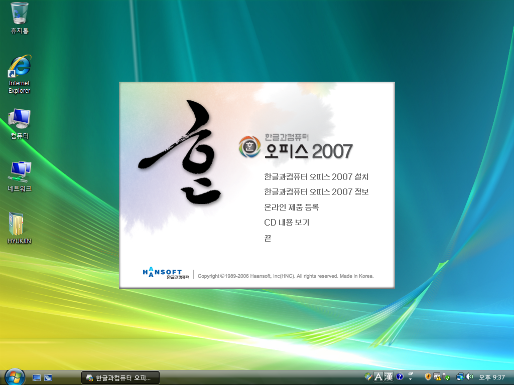 한글 2007 로고입니다. 수묵화같은 '한' 로고가 멋지네요. 행망용 로고가 박혀있습니다.