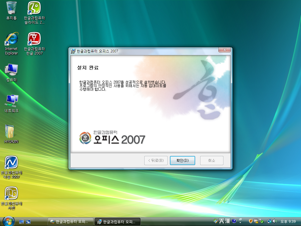 이상 한컴오피스 2007 설치기였습니다.