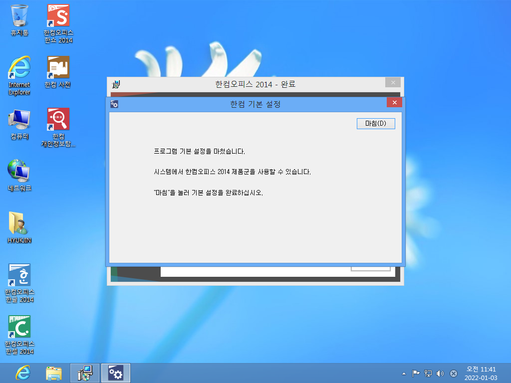 한컴오피스 2014 설치가 끝났습니다. 설정을 누릅니다.
