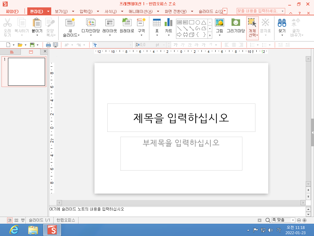 한쇼 2014의 모습입니다. 한셀이 엑셀과 똑같듯 얘도 파워포인트와 똑같습니다.