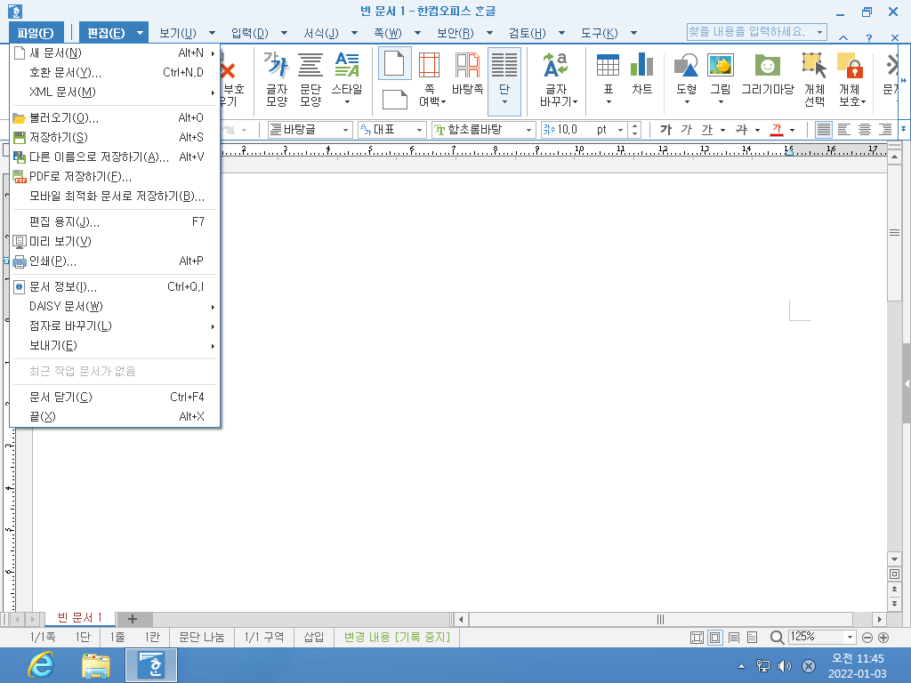 한글 2014를 실행 중입니다. 로고가 심플하게 바뀌었네요.