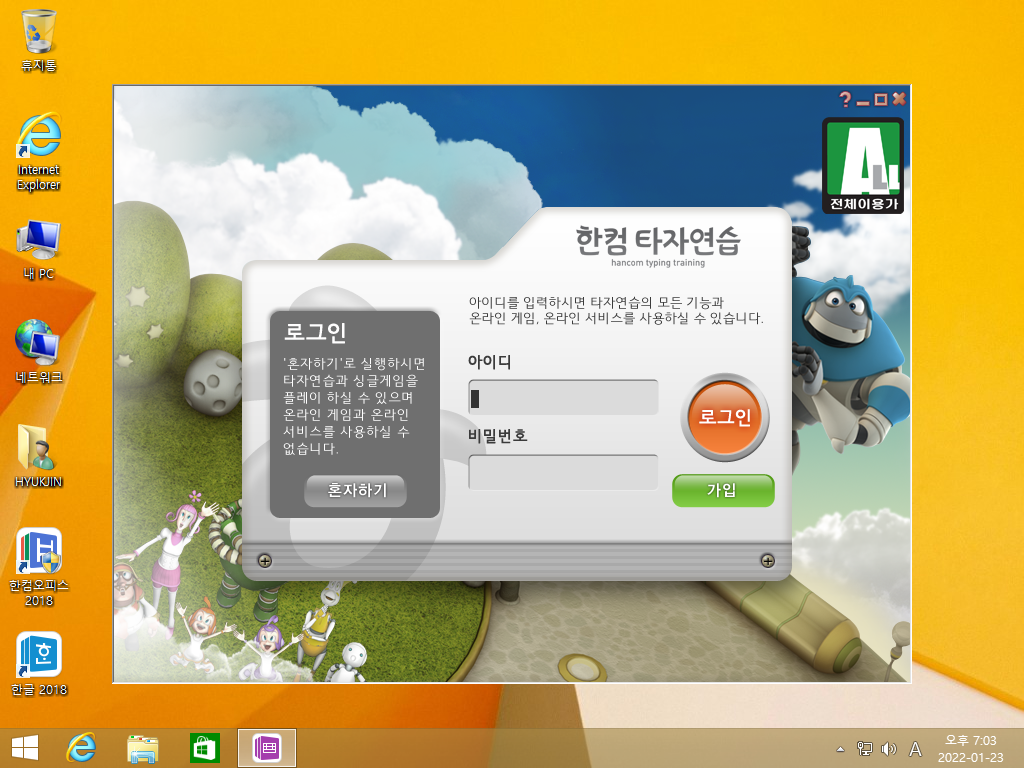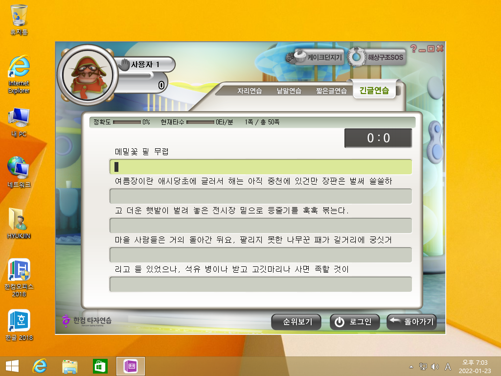 다음은 한컴타자연습을 실행해보겠습니다.