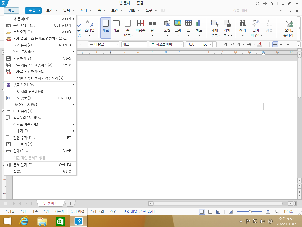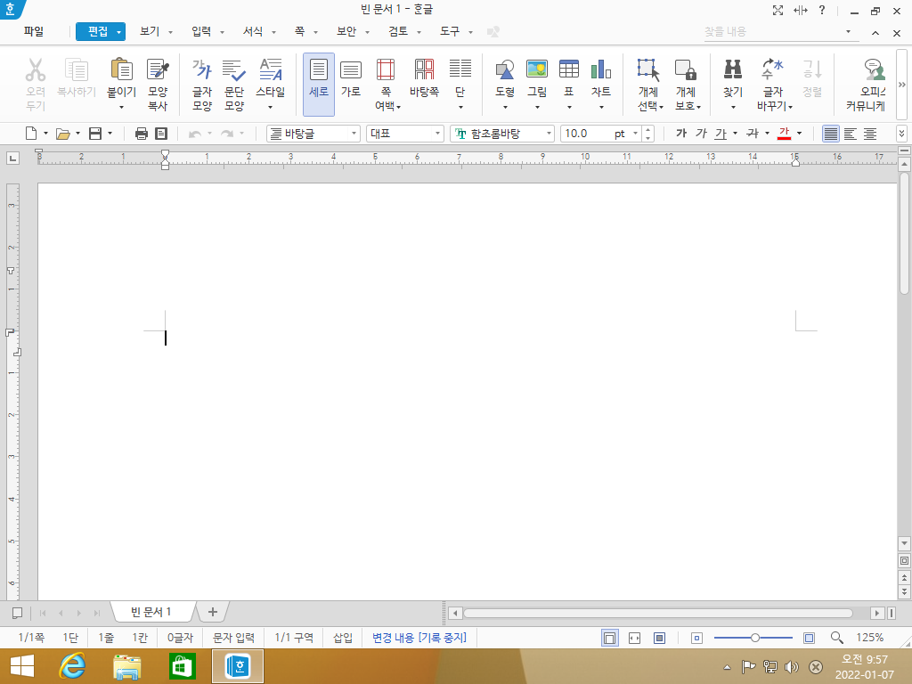 한글 2018의 모습입니다. 메뉴와 글씨체가 살짝 달라진 것 같습니다.