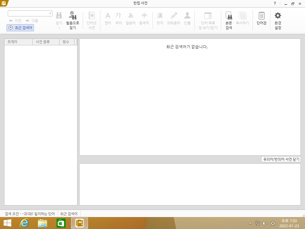 한컴 사전의 모습입니다. 이건 항상 그대로입니다.