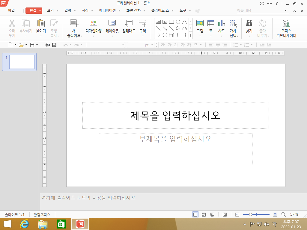 한쇼 2018의 모습입니다. 얘는 프레젠테이션 프로그램입니다.