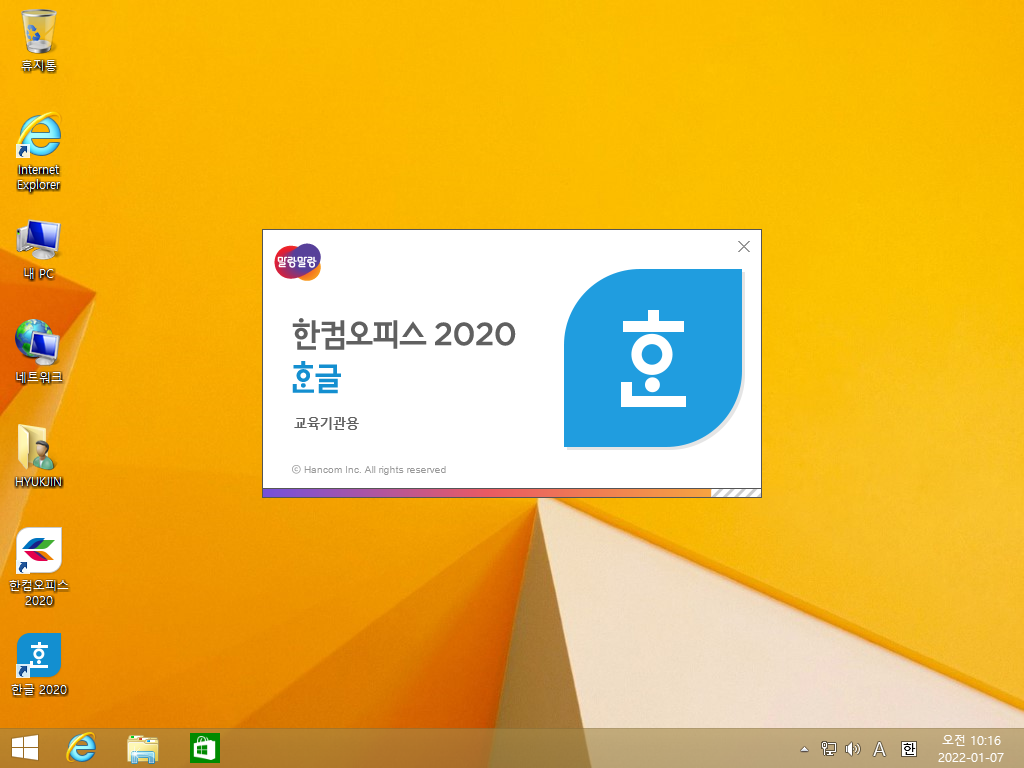 우선 한글 2020을 실행해봅니다. 한글 로고가 크게 들어갔네요.