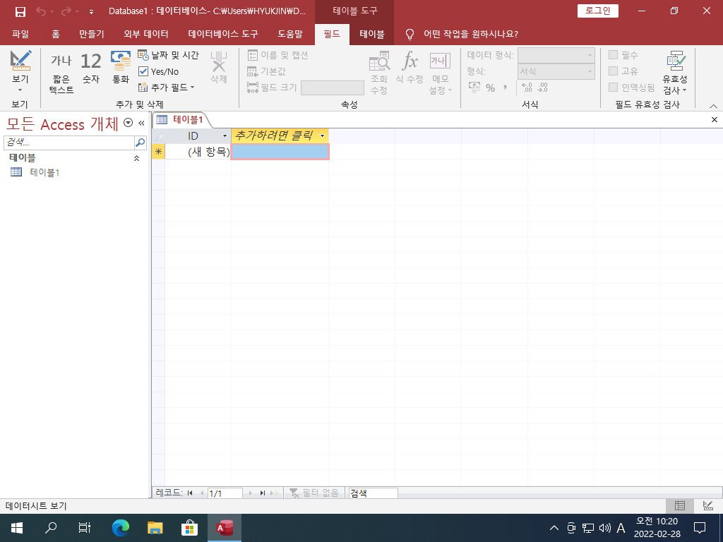 액세스의 모습입니다. 액세스는 오피스 2007 이후로 테마가 크게 바뀌지 않았습니다.