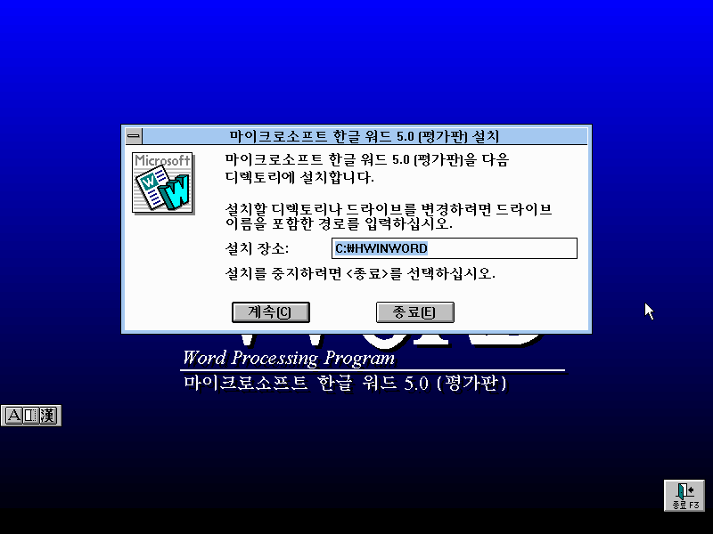 이상 Microsoft Word 5.0 평가판 설치기였습니다.