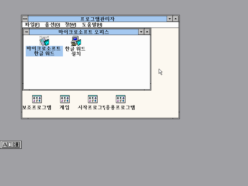 워드 5.0이 설치된 모습입니다. 마이크로소프트 오피스 그룹에 워드만 달랑 하나 있습니다.