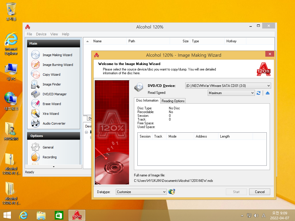 각종 디스크로부터 이미지를 덤프해서 이미지 파일을 생성하고 편집하거나, 디스크를 굽는 등 다양한 기능이 있는 Alcohol 120%입니다. 알코올 120%는 디스크 이미지를 덤프할 때 확장자를 mds로 선택하고 옵션에서 서브채널 데이터까지 복사할 수 있도록 설정이 가능하기 때문에 디스크 이미지의 파일을 손상이나 빼먹는 것 없이 온전하게 덤프할 수 있다는 장점이 있습니다. iso로 덤프하면 가끔 아래아 한글 특정 버전은 파일을 빼먹어서 설치가 안되는데, 이런 오류가 생기지 않아서 매우 유용합니다. 포터블 버전이라서 설치도 필요없습니다. 압축 파일을 풀고 실행하시면 되는데, 처음에 driver fail 창이 뜨면 그냥 확인 눌러주시고, 업데이트 창이 떠도 그냥 꺼주시면 됩니다. 버전은 2.0.3.9902입니다. 2.87MB 압축 파일입니다.