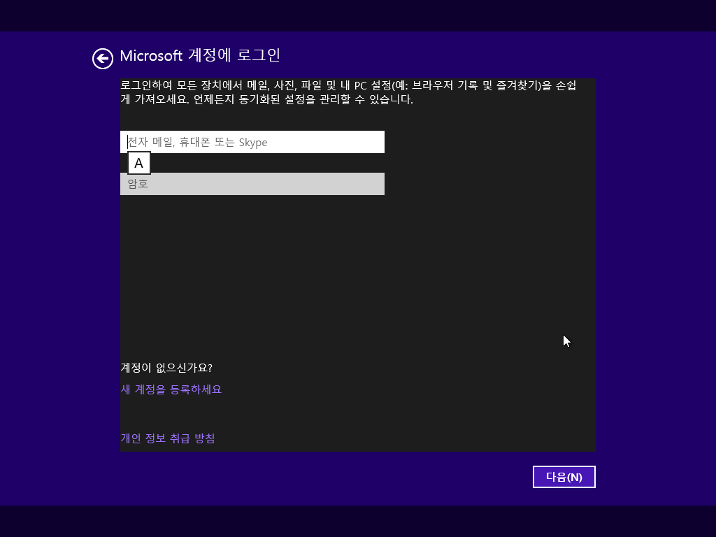그것도 싫고 그냥 로컬 계정을 사용하고 싶다면 사용자 이름과 암호를 입력하면 됩니다.