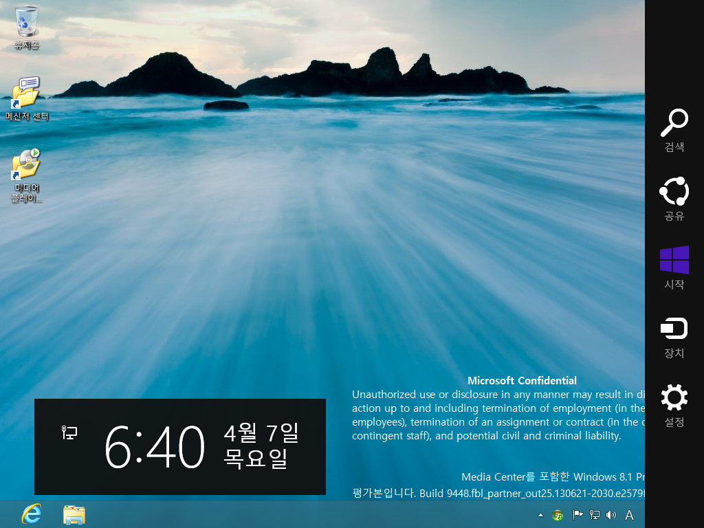 이상 Windows 8.1 Pro K Preview with Media Center Build 9448 설치기였습니다.