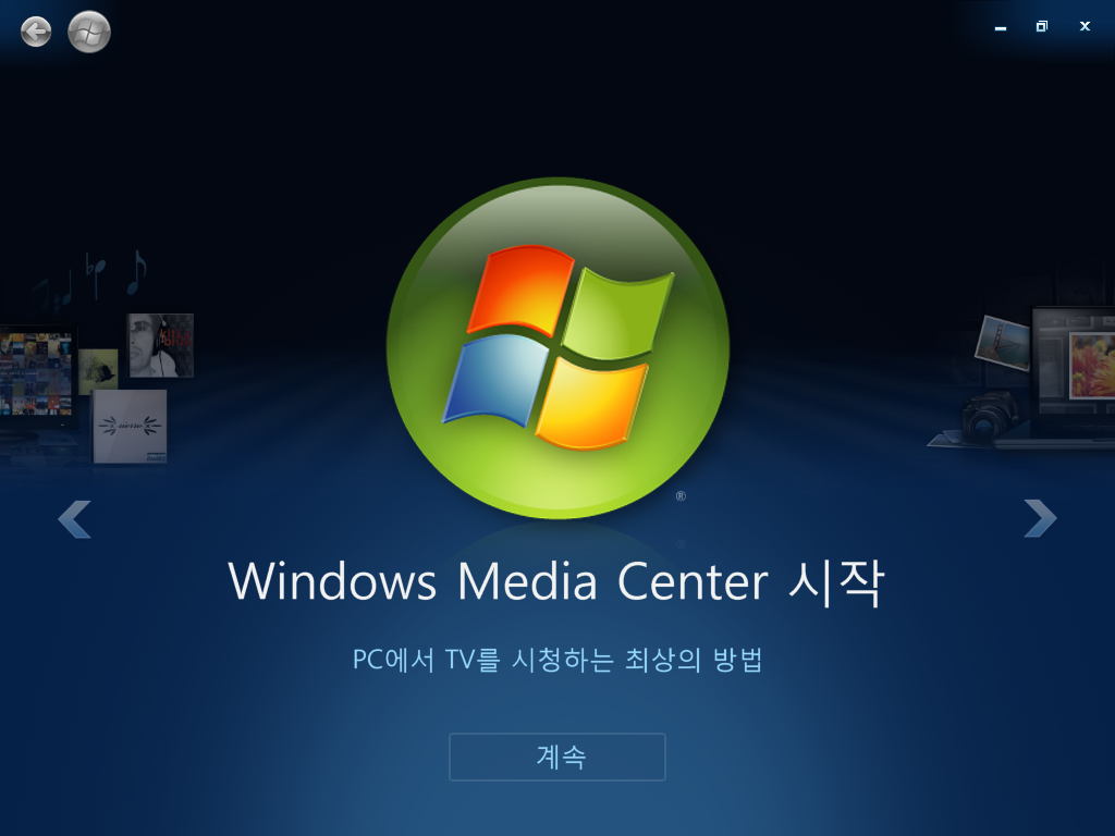 미디어 센터 에디션이라서 미디어 센터를 한번 실행해보았습니다.