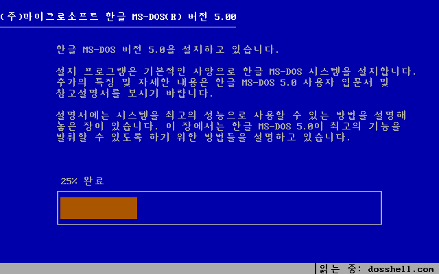 아까 설치 중에 시스템 시작 시 도스 셸이 실행되도록 설정했다면 이렇게 바로 도스 셸이 나옵니다.