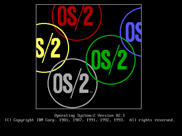 부팅 화면입니다. Operation System /2, 줄여서 OS/2입니다. 뒤에 붙은 /2는 차세대라는 뜻입니다. 버전 H2.1입니다. 로고가 알록달록하네요.