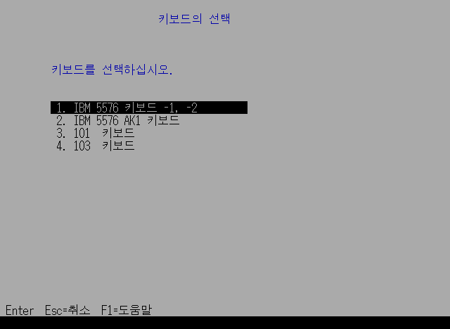 다시 아까의 첫번째 화면으로 돌아왔습니다. 설치 디스켓을 제거하고 1번 디스켓을 넣습니다.