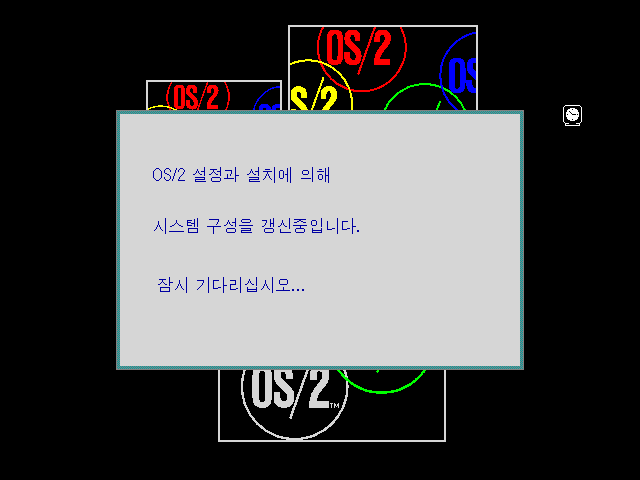 시스템 구성 갱신 중입니다. 윈도우는 뭔가 진행 중이면 마우스가 모래시계 모양으로 되는데, OS/2는 그냥 시계 모양이 되네요.
