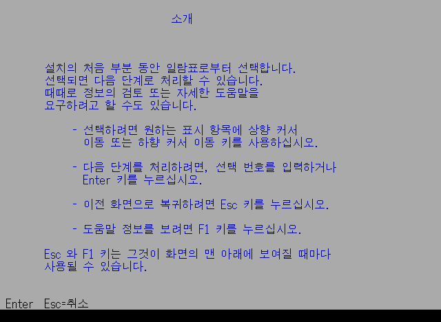 설치 디스켓을 넣으면 파란 설치 시작 화면이 나옵니다. IBM의 로고가 웅장하네요. 설치 디스켓을 빼고 1번 디스켓을 넣은 후 엔터를 누릅니다.