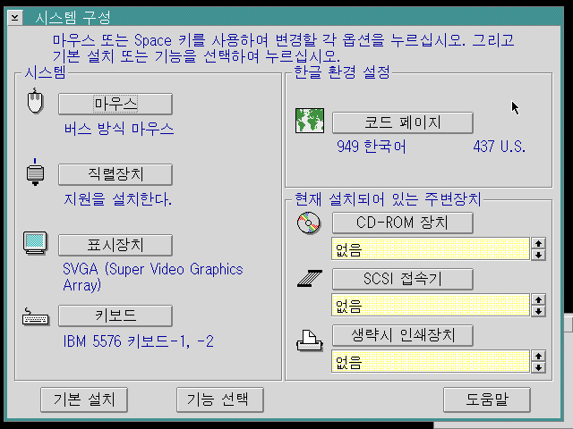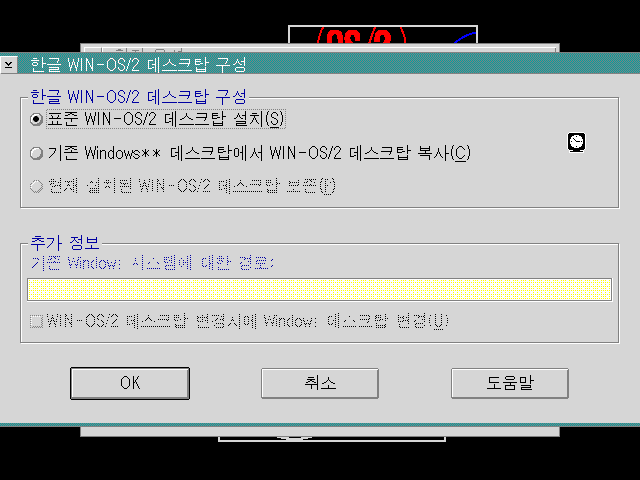 데스크탑 구성입니다. 표준 WIN-OS/2 데스크탑 설치를 선택합니다. 윈도우와 호환이 되나 봅니다.