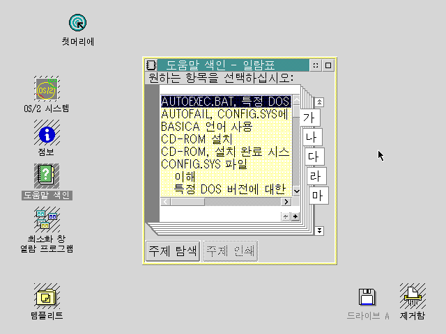 시작하기 전에 간단한 도움말을 통해 OS/2 사용법을 학습할 수 있습니다.