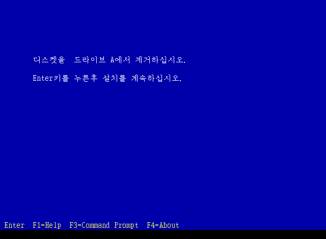 파일 복사가 끝났습니다. 드라이브에서 디스켓을 제거하고 엔터를 누릅니다.