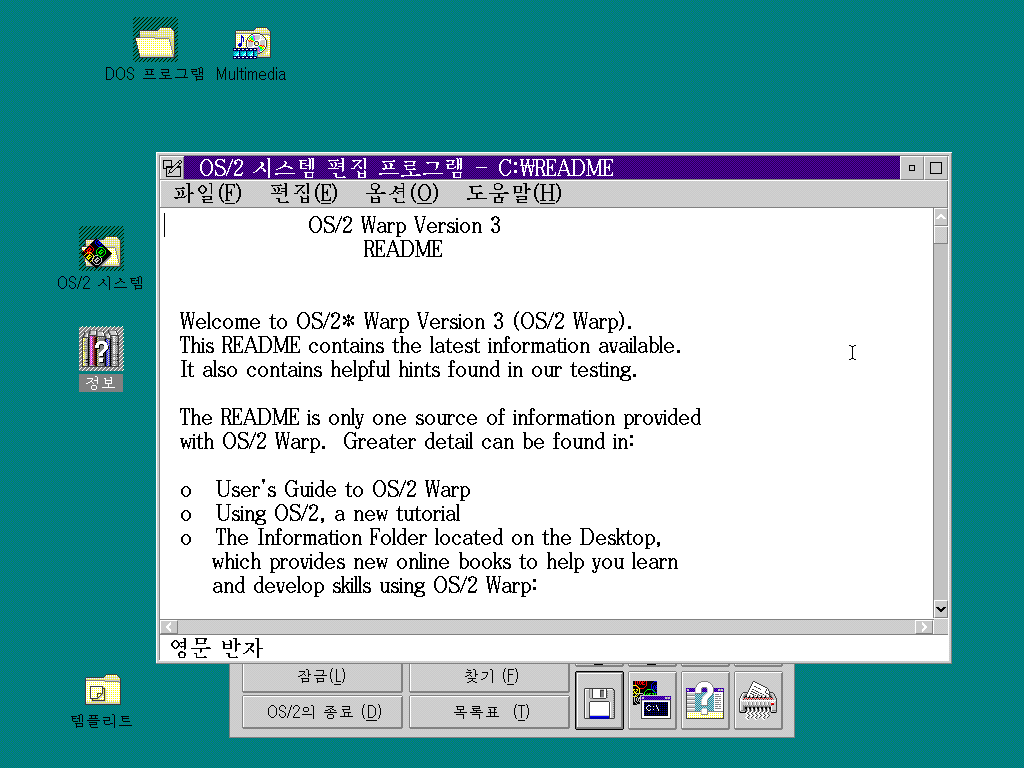 Readme 파일을 열어보았습니다. OS/2 Warp 3.0 베타 버전입니다.