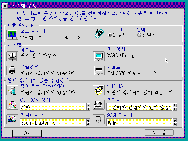 시스템 구성을 설정합니다. 하드웨어 장치를 설정할 수 있습니다. OK를 누릅니다.