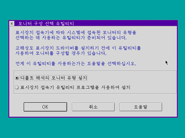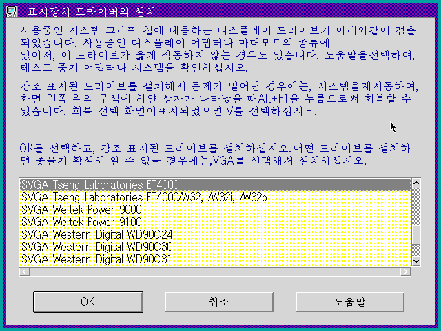 표시장치, 즉 디스플레이 드라이버 설치를 합니다. 올바른 드라이버를 선택한 후 OK를 누릅니다.