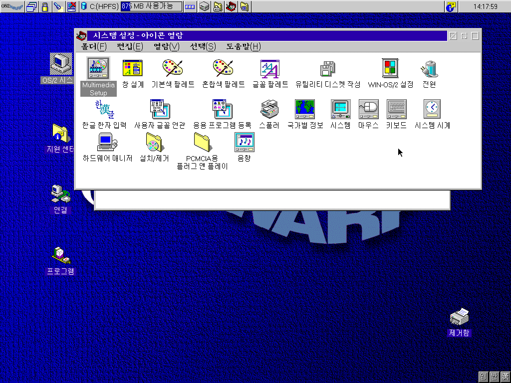 OS/2 시스템 항목을 열어보았습니다. 시스템 설정 및 여러가지 항목이 있습니다.
